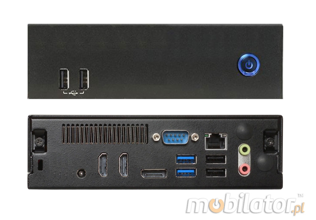 Zintegrowana karta sieciowa Realtek Gigabit Ethernet 10/100/1000Mbps lub karta WiFi (opcja) umożliwia podłączenie urządzenia do sieci. Komputer wyposażony jest w: złącze LAN, jeden port COM(RS232), cztery porty USB 2.0, dwa porty USB 3.0 , dwa wyjścia HDMI, jeden Display Port dwa wejścia audio oraz opcjonalnie WIFI, Bluetooth.
