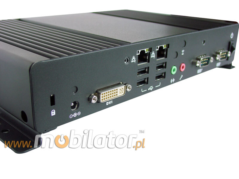 Zintegrowana karta sieciowa 10/100 Ethernet lub karta WiFi (opcja) umożliwia podłączenie urządzenia do sieci. Komputer wyposażony jest w dwa złącza LAN, dwa porty COM(RS232), jedno wyjście DVI, cztery porty USB oraz opcjonalnie w tuner telewizyjny i czytnik kart CF.