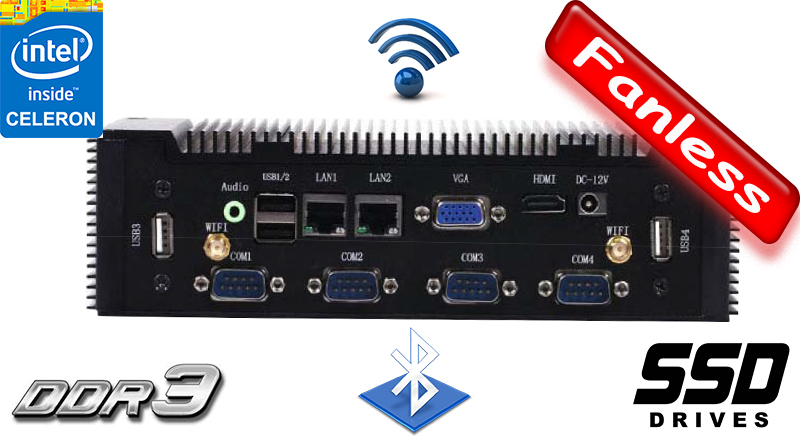 Zintegrowana karta sieciowa - Intel RTL8111E 100M Lan oraz moduł WiFi umożliwiaja podłączenie urządzenia do sieci. Komputer wyposażony jest w: dwa złącza LAN, cztery porty COM(RS232), jedno wyjście VGA, cztery porty USB 2.0, jedno wyjście HDMI, jedno wejście Audio, jedno wejście mikrofonowe.