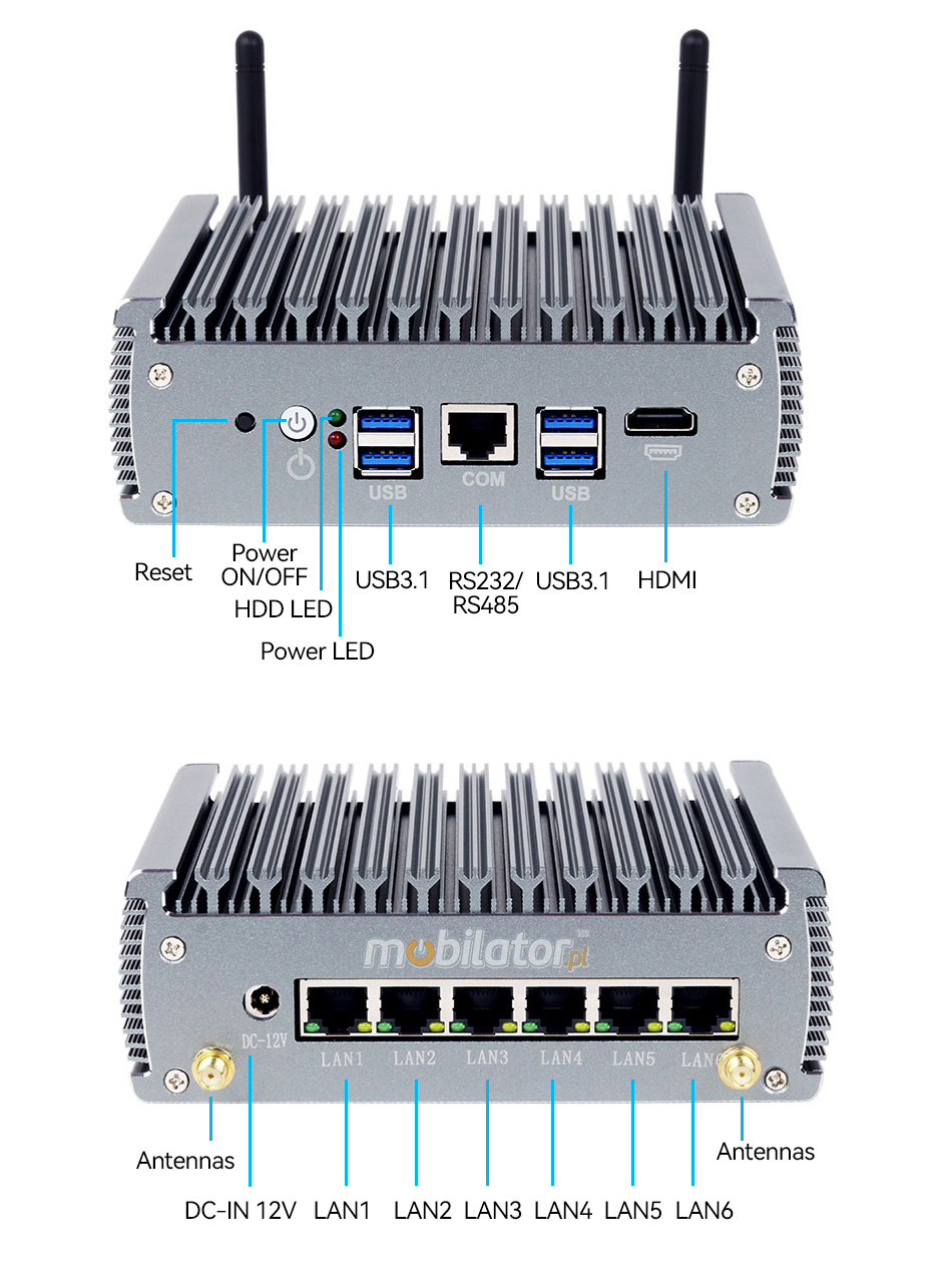 Zastosowany w MiniPC yBOX-X56 system chłodzenia pasywnego sprawia, że komputer ten cechuje się bardzo dużą odpornością na różnego rodzaju urazy mechaniczne. Dodatkowym atutem przemysłowych komputerów jest solidna konstrukcja wykonana z wysokiej jakości aluminium i specjalnie zaprojektowana w taki sposób, by oprócz wysokiej wydajności przy odprowadzaniu ciepła, mogła także oprzeć się wszelkim uszkodzeniom zewnętrznym.