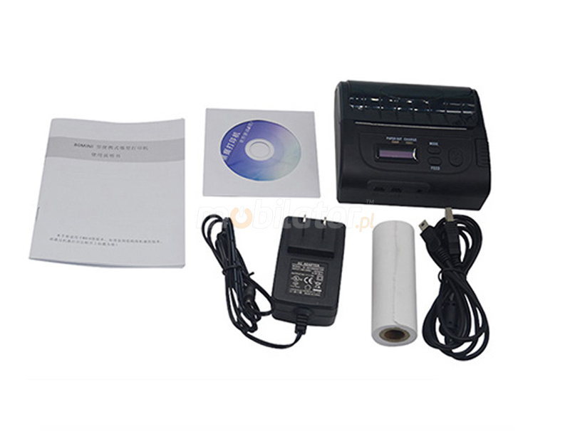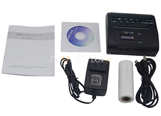 Akumulator, ³adowarka, kabel USB, Sterowniki na CD, rolka papieru,