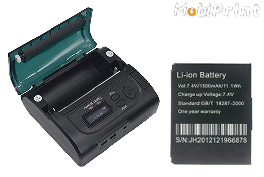 MobiPRINT MXC 8020 zosta³a wyposa¿ona w akumulator Li-Ion o wystarczaj±cej pojemno¶ci - 2000mAh, co pozwala dzia³aæ od 120-150 minut w trybie ci±g³ego drukowania lub pozostawiæ w stanie czuwania do 8dni.