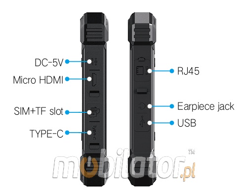 Wszechstronny tablet Mobipad 08DS-RTNL oferuje bogaty zestaw interfejsów, który pozwala na wygodne podłączenie różnorodnych akcesoriów i urządzeń peryferyjnych. Do dyspozycji użytkownika są m.in. port USB-C z funkcją OTG, klasyczne USB 3.0, złącze mini HDMI, gniazdo audio 3,5 mm, a także slot na kartę SIM oraz czytnik kart TF. Dzięki temu odporny tablet przemysłowy sprawdza się zarówno w pracy biurowej, jak i w terenie, gwarantując elastyczność i niezawodność w każdej sytuacji.