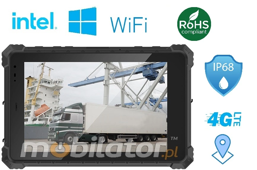Wytrzymały tablet przemysłowy Mobipad 10DS-RTYF to urządzenie klasy rugged stworzone do pracy w wymagających warunkach terenowych i przemysłowych. Wyposażony w 10,1-calowy wyświetlacz oraz procesor Intel Core i7, oferuje wysoką wydajność i niezawodność. Tablet posiada 16 GB pamięci RAM i 256 GB pamięci wewnętrznej, a solidna obudowa zgodna z normą IP68 gwarantuje pełną odporność na kurz i wodę. Ekran o rozdzielczości 1920×1200 px i jasności 700 nitów, zabezpieczony szkłem Corning Gorilla Glass III, zapewnia doskonałą widoczność nawet w ostrym świetle słonecznym. Za łączność odpowiadają moduły LTE, Wi-Fi, Bluetooth i GPS, a bateria o pojemności 5000 mAh umożliwia do 7 godzin nieprzerwanej pracy w terenie.