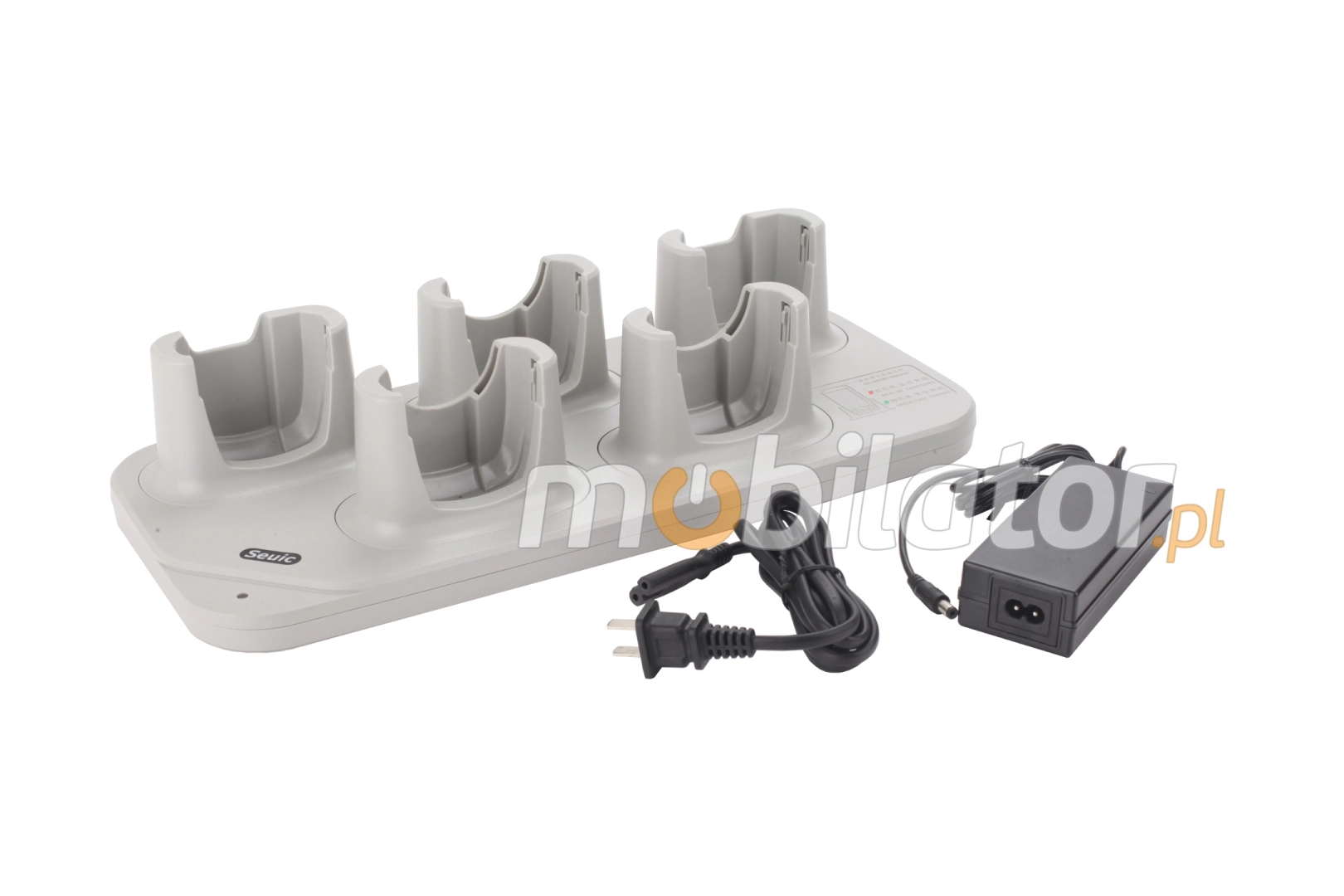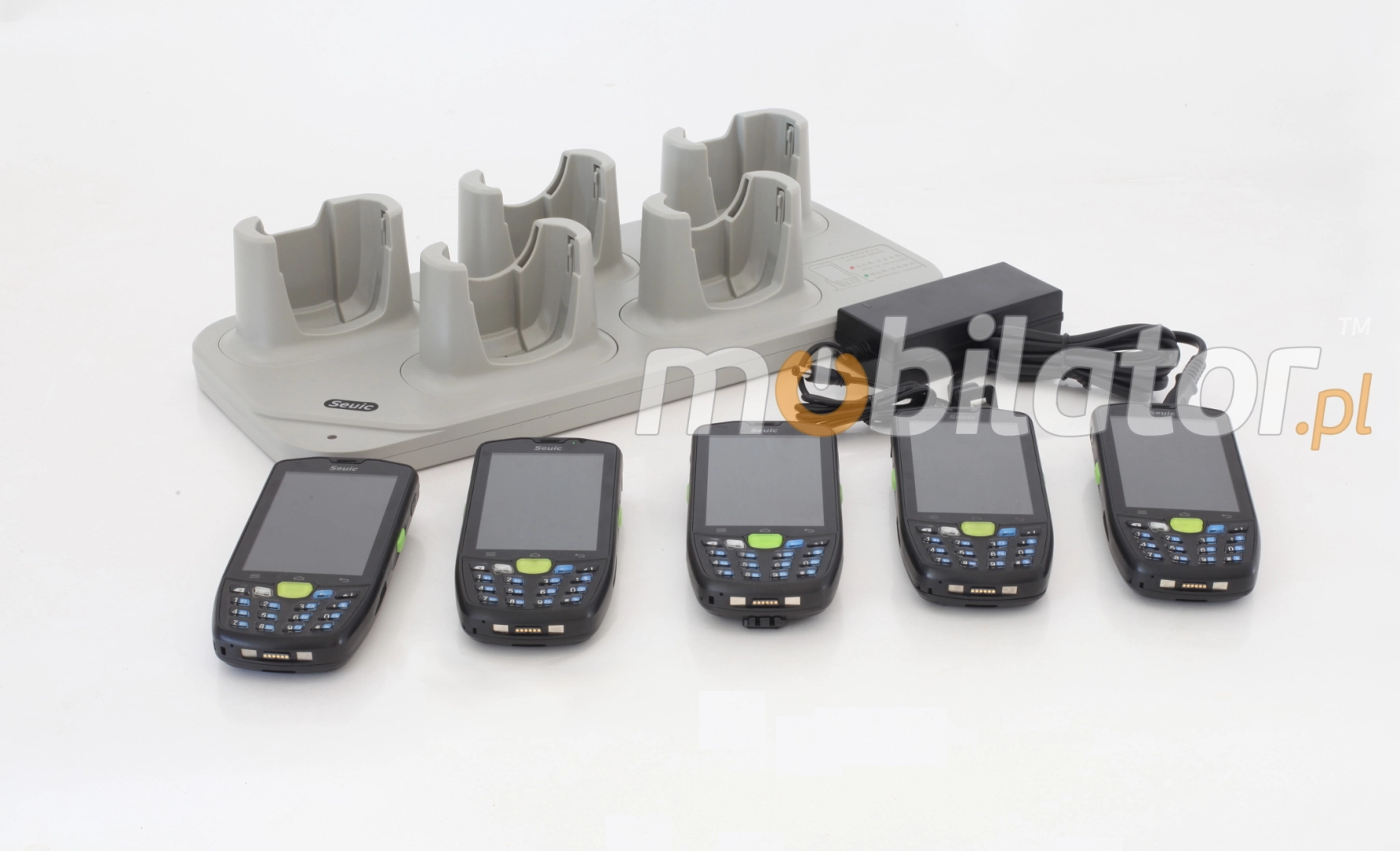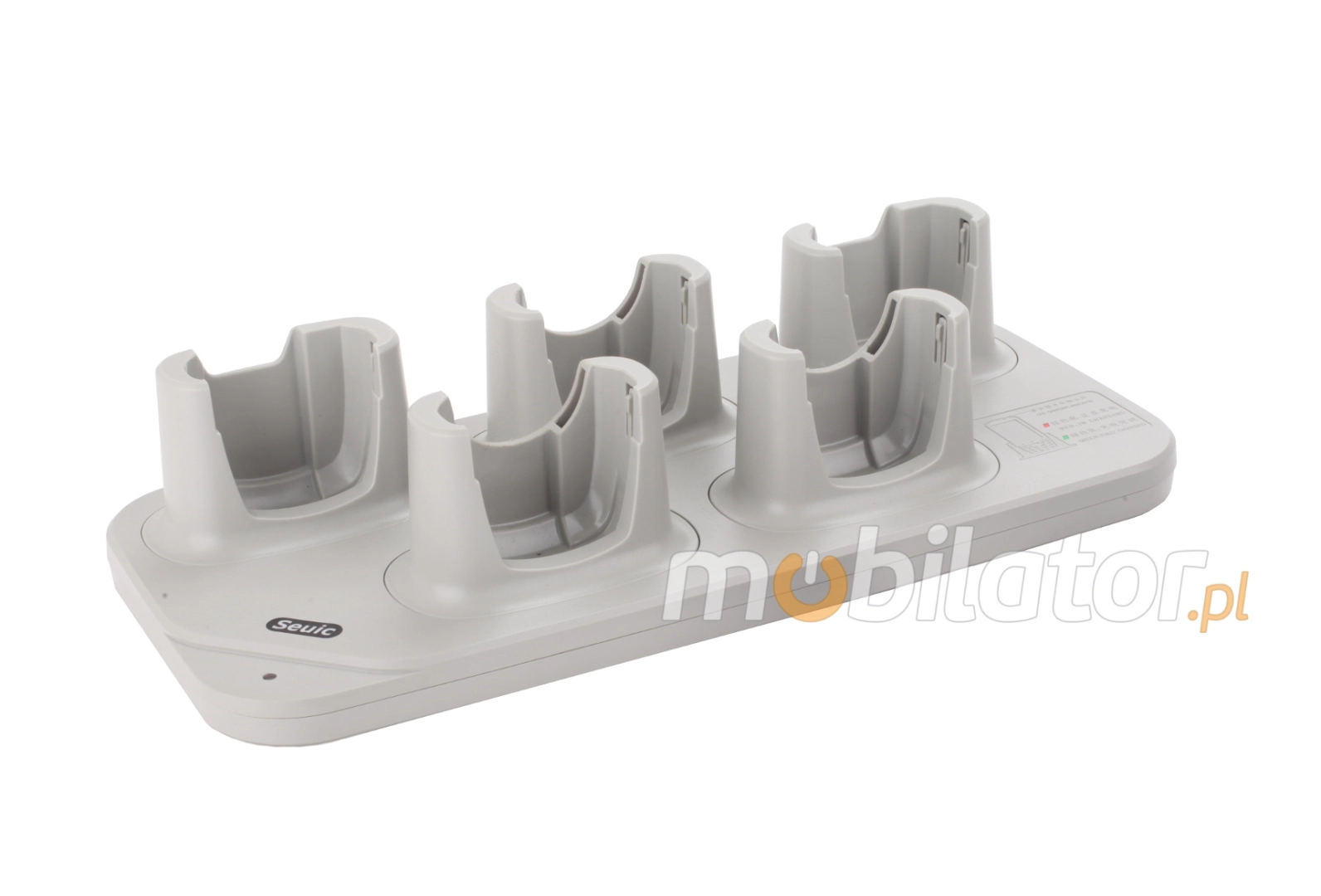 Przenośna stacja ładowania baterii zapewnia kompleksowe i wygodne ładowanie standardowej baterii urządzenia MobiPad MPS8W. Wystarczy podłączyć stację do zasilania za pomoca standardowej ładowarki i umiejscowić w niej urządzenie.
