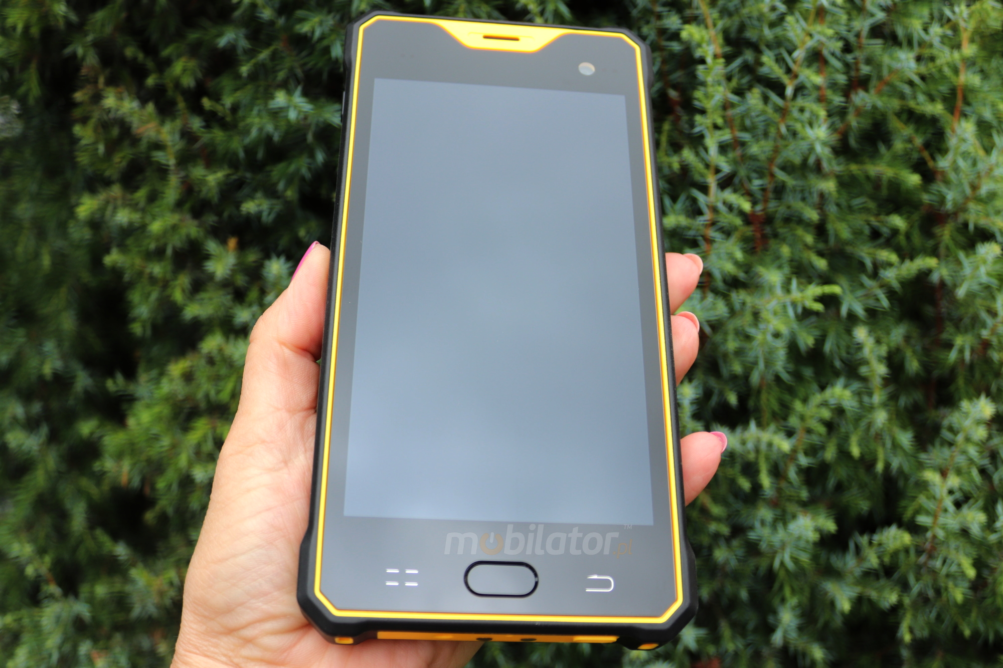 Wzmocniony smartfon Senter ST917 v2.0 został stworzony z myślą o odporności i wygodzie. Wytrzymała obudowa o grubości 15mm oraz stylowy design sprawią, że będzie bardzo dobrze sprawdzał się w warunkach przemysłowych i nie tylko. Unikatowy rozmiar został starannie przemyślany, aby urządzenie było bardziej poręczne i ergonomiczne. Antypoślizgowa obudowa sprawia, że bezpiecznie i pewnie będziesz go trzymał w dłoni, a gumowe narożniki dodatkowo zabezpieczą urządzenie przed możliwymi uszkodzeniami w wyniku upadków.