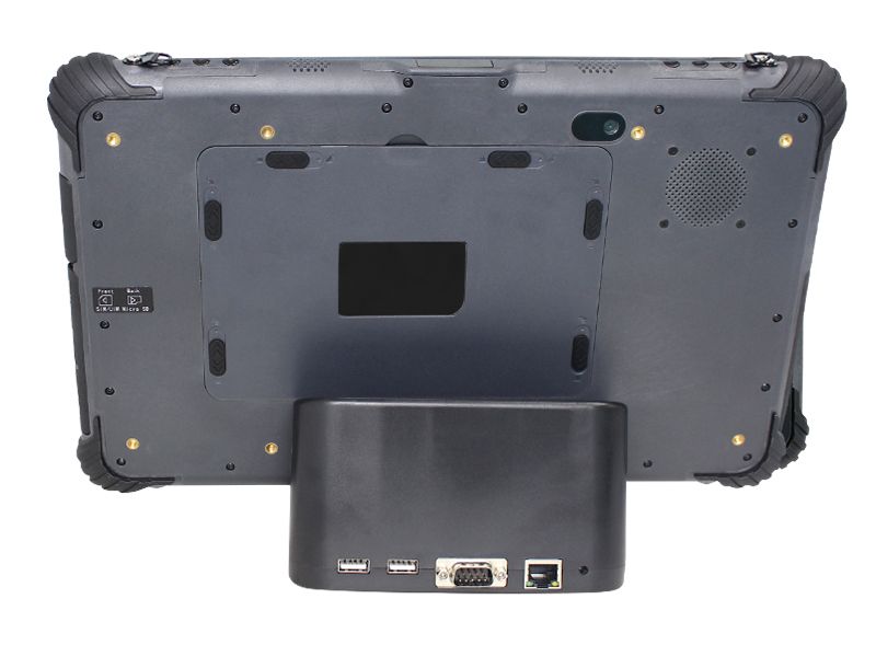 Stacja dokująca przeznaczona dla wodoodpornego tabletu przemysłowego MobiPad T1300U pozwala na sprawne ładowanie baterii umieszczonej w tablecie. Dodatkowe złącza wbudowane w stację dokującą dają możliwość połączenia tabletu z siecią poprzez złącze RJ45 oraz z wszelkiego rodzaju akcesoriami (peryferiami) poprzez dwa złącza USB.  Do dyspozycji mamy dodatkowe złącze techniczne RS232.  Dzięki konstrukcji typu dock, zarówno włożenie, jak i wyjęcie tabletu odbywa się jednym ruchem, co znacząco ułatwia codzienną pracę w biurze lub na stanowisku pracy. Stacja została zaprojektowana specjalnie z myślą o zastosowaniach serwisowych, technicznych i przemysłowych.