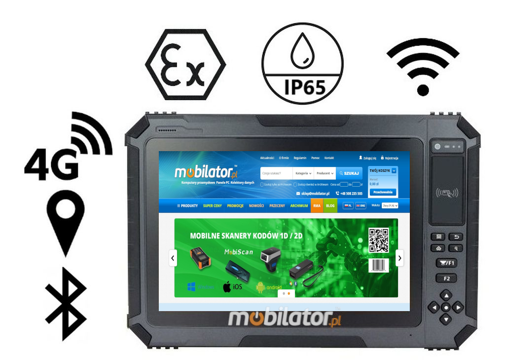 Tablet przemysłowy MobiPad Tex101 to idealne narzędzie pracy w strefach zagrożonych wybuchem, co potwierdza certyfikat ATEX. Urządzenie zaprojektowano z myślą o branżach, gdzie obecność gazów wybuchowych jest na porządku dziennym, takich jak przemysł naftowy i petrochemiczny, górnictwo, wojsko czy służby publiczne. Odporność urządzenia na trudne warunki środowiskowe potwierdzają normy MIL-STD-810G oraz IP65. Dzięki nim, tablet jest chroniony przed kurzem, wodą, wstrząsami, wibracjami oraz ekstremalnymi temperaturami. Pancerna konstrukcja wytrzyma upadek z wysokości 1,22 metra oraz nacisk do 2 ton. Tablet wyposażono w bezpieczną i wydajną baterię o pojemności 14600 mAh. Ekran urządzenia zapewnia doskonałą czytelność nawet w ostrym słońcu, a bezawaryjne działanie jest gwarantowane nawet w bardzo niskich temperaturach.