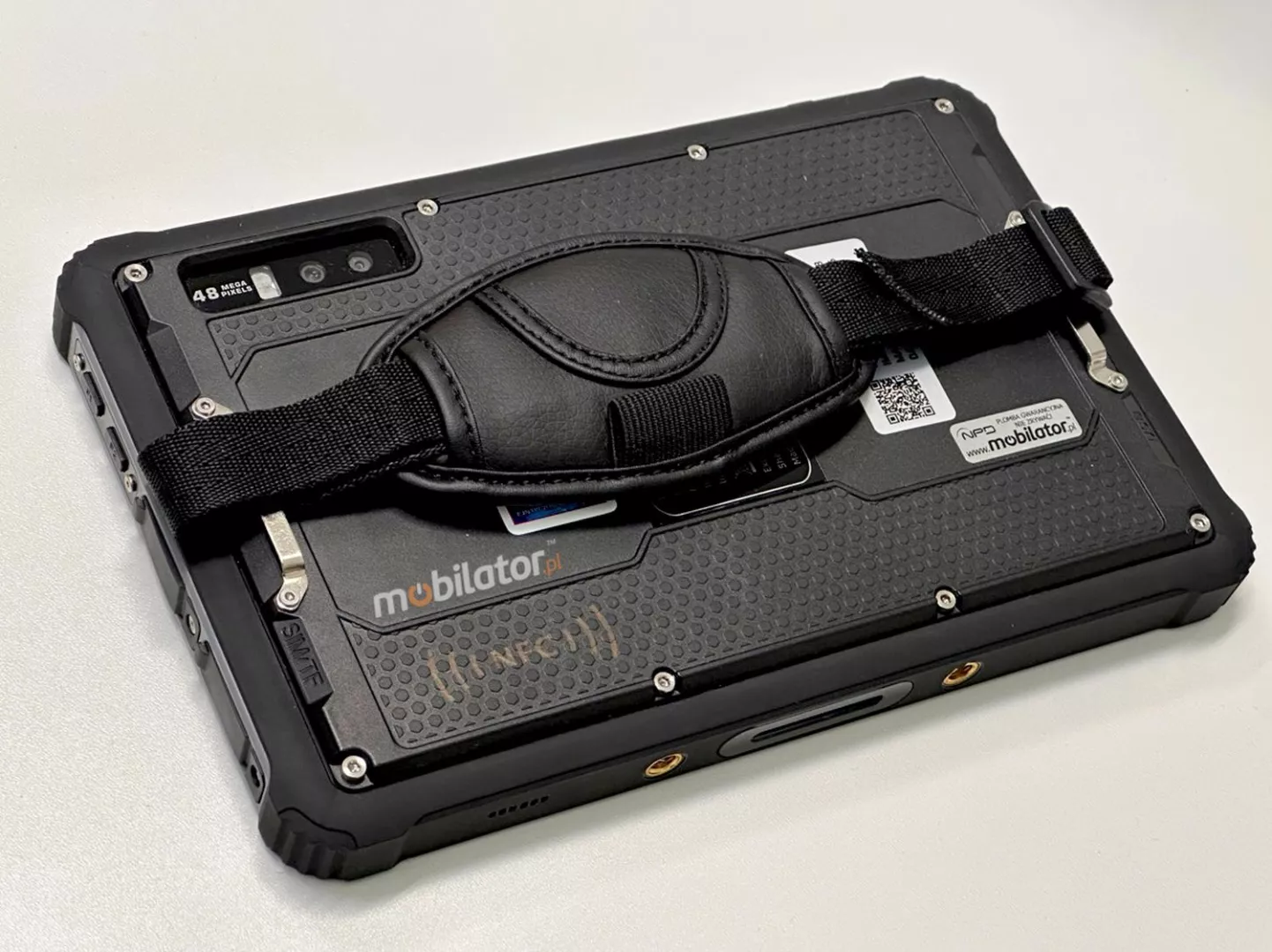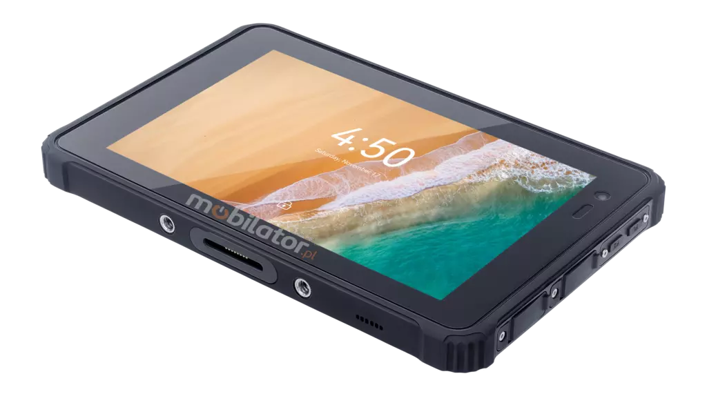 Tablet MobiPad Tex81 to idealne połączenie wytrzymałości i ergonomicznego designu. Urządzenie jest solidne, a jednocześnie poręczne dzięki smukłej obudowie o grubości 23 mm. Starannie zaprojektowana, antypoślizgowa powierzchnia zapewnia pewny chwyt, a gumowe narożniki dodatkowo chronią tablet przed uszkodzeniami spowodowanymi upadkami. Dzięki temu MobiPad Tex81 doskonale sprawdza się zarówno w wymagającym środowisku przemysłowym, jak i w codziennym użytkowaniu.