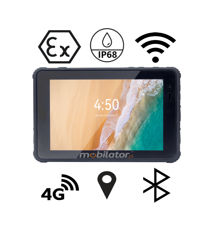 Wzmocniony tablet MobiPad Tex81 to profesjonalny sprzętprzeznaczony do pracy w strefach zagrożonych wybuchem, fakt ten potwierdza certyfikat ATEX. Ten trwały tablet zaprojektowano z myślą o miejscach i sytuacjach, gdzie obecność gazów wybuchowych jest na porządku dziennym, między innymi przemysł naftowy i petrochemiczny, górnictwo, wojsko czy służby publiczne. Wytrzymałość urządzenia na trudne warunki środowiskowe potwierdzają normy MIL-STD-810G oraz IP68. Dowodzą one, że tablet jest chroniony przed kurzem, wodą, wstrząsami, wibracjami oraz ekstremalnymi temperaturami. MobiPad Tex81 wyposażono w bezpieczną i wydajną baterię o pojemności 12000 mAh. Ekran urządzenia zapewnia doskonałą czytelność nawet w ostrym słońcu, a bezawaryjne działanie jest gwarantowane nawet w bardzo niskich temperaturach.