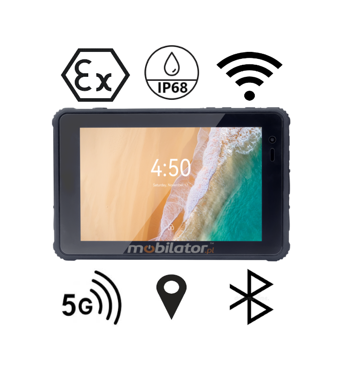 Wzmocniony tablet MobiPad Tex81 to profesjonalny sprzętprzeznaczony do pracy w strefach zagrożonych wybuchem, fakt ten potwierdza certyfikat ATEX. Ten trwały tablet zaprojektowano z myślą o miejscach i sytuacjach, gdzie obecność gazów wybuchowych jest na porządku dziennym, między innymi przemysł naftowy i petrochemiczny, górnictwo, wojsko czy służby publiczne. Wytrzymałość urządzenia na trudne warunki środowiskowe potwierdzają normy MIL-STD-810G oraz IP68. Dowodzą one, że tablet jest chroniony przed kurzem, wodą, wstrząsami, wibracjami oraz ekstremalnymi temperaturami. MobiPad Tex81 wyposażono w bezpieczną i wydajną baterię o pojemności 12000 mAh. Ekran urządzenia zapewnia doskonałą czytelność nawet w ostrym słońcu, a bezawaryjne działanie jest gwarantowane nawet w bardzo niskich temperaturach.
