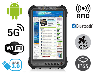 MobiPAD TS9T v.5 - wzmocniony tablet przemysłowy z normą IP65, wyposażony w moduł UHF RFID o zasięgu do 4 metrów, 5G, Wifi i Bluetooth, 8GB RAM, 256GB ROM