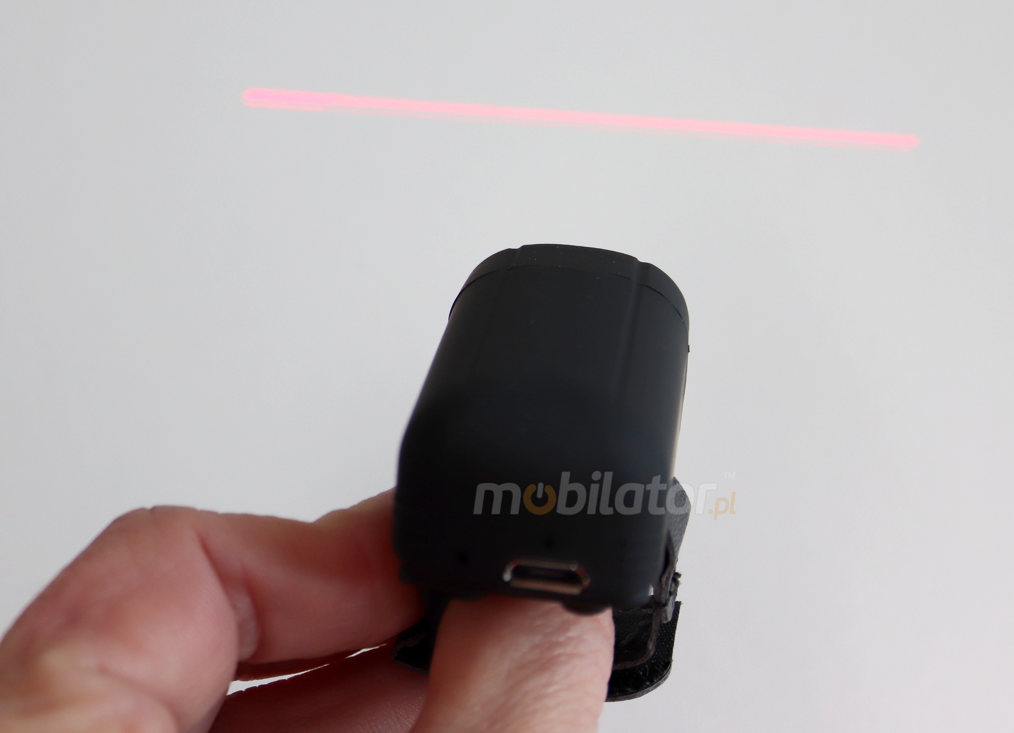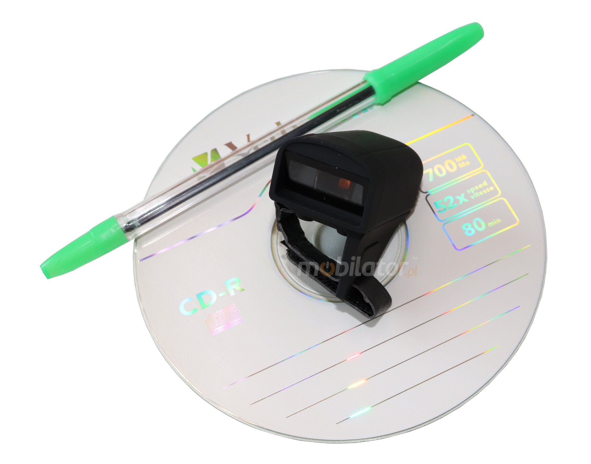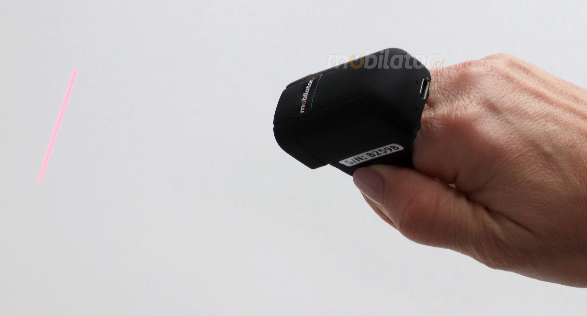 Nowej generacji mini skaner zaskakuje swoim wyglądem, przypomina pudełko zapałek, do którego na spodniej części został doczepiony pierścień służący do nakładania urządzenia na palec wskazujący. Ten ergonomiczny, niewielki i wyjątkowo lekki czytnik kodów kreskowych o odpowiedniej fakturze powierzchni, zapewnia dobre trzymanie i ogranicza zmęczenie dłoni przy wielogodzinnej pracy.