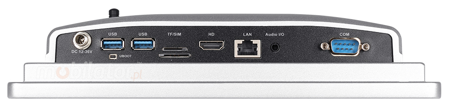 Phoenix terminal | RS232 | 2xUSB 3.0 | RJ-45 LAN | HDMI | UBOOT | SIM | TF | DC |