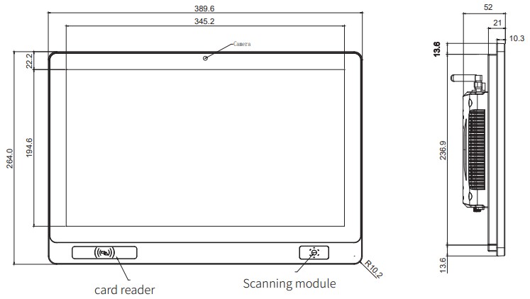 Panel PC posiada dobrej jakości obudowę wykonaną z metalu. Jest ona ważnym elementem systemu chłodzenia dzięki specjalnie zaprojektowanym wycięciom ułatwiającym obieg powietrza wewnątrz obudowy. Całościowy design urządzenia nastawiony jest na prostotę i funkcjonalność cenione wśród profesjonalistów, jako akcesorium można panel wyposażyć w chłodzenie pasywne.