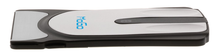 Myszka Mogo BT™ swoimi gabarytami przypomina kartę kredytową którą przechowujemy i jednocześnie ładujemy w porcie PCMCIA naszego notebooka. Mysz Mogo wyposażona jest w wbudowany akumulator dzięki czemu nie musimy pamiętać o dokupywaniu nowych baterii, a technologia Bluetooth™ umożliwia nam sterowanie kursorem nawet do 10 metrów od Laptopa.