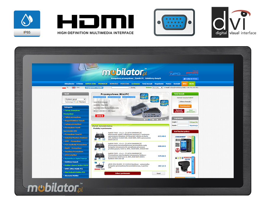 Monitory przemysłowe z firmy Mobilator oparte są na wydajnych najlepszej jakości wyświetlaczach.