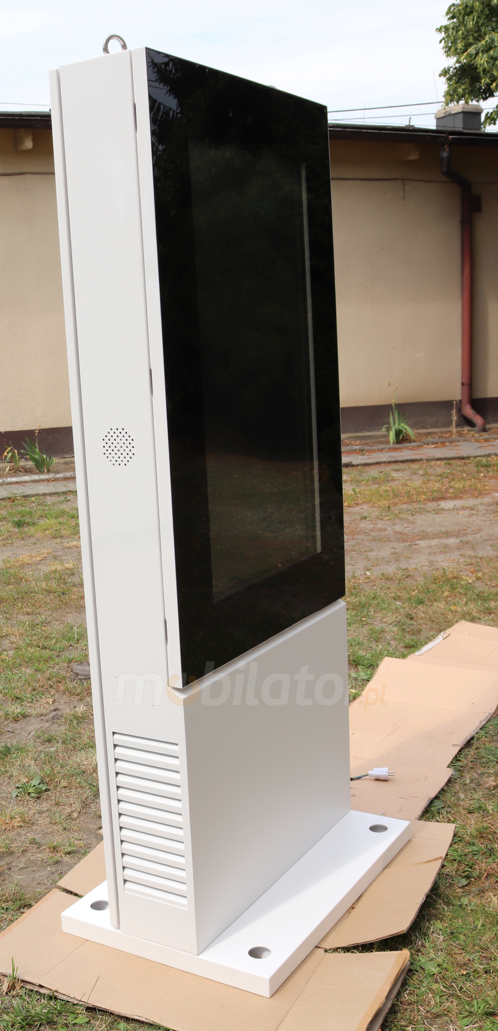 Obudowa panelu o wymiarach 1900mm x 810mm x 230mm została wykonana z najwyższej jakości metalu pokrytego powłoką galwaniczną, co zapewnia bardzo dużą odporność urządzenia na uszkodzenia mechaniczne i ciężkie warunki atmosferyczne, deszcz, mgłę, śnieg oraz szron. Model ten o wadze 130.0 kg, jest w każdej chwili gotowy do eksploatacji nawet w trudnych warunkach, takich jak upał czy zimno. Digital Singage Player - Android 43 cale Totem reklamowy, informacyjny NoMobi Trex to seria urządzeń przeznaczonych do zastosowań wymagających ciągłej pracy - 24 godziny, 7 dni w tygodniu.