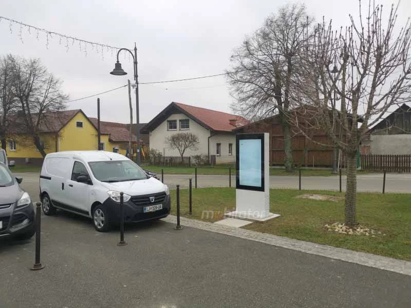 Totem wolnostojący przemysłowy z ekranem LCD jest wyposażony w moduł WiFi (opcja), Bluetooth (opcja) oraz opcjonalnie w 4G. Dodatkowo totem posiada moduł pozwalający namierzanie pozycji.