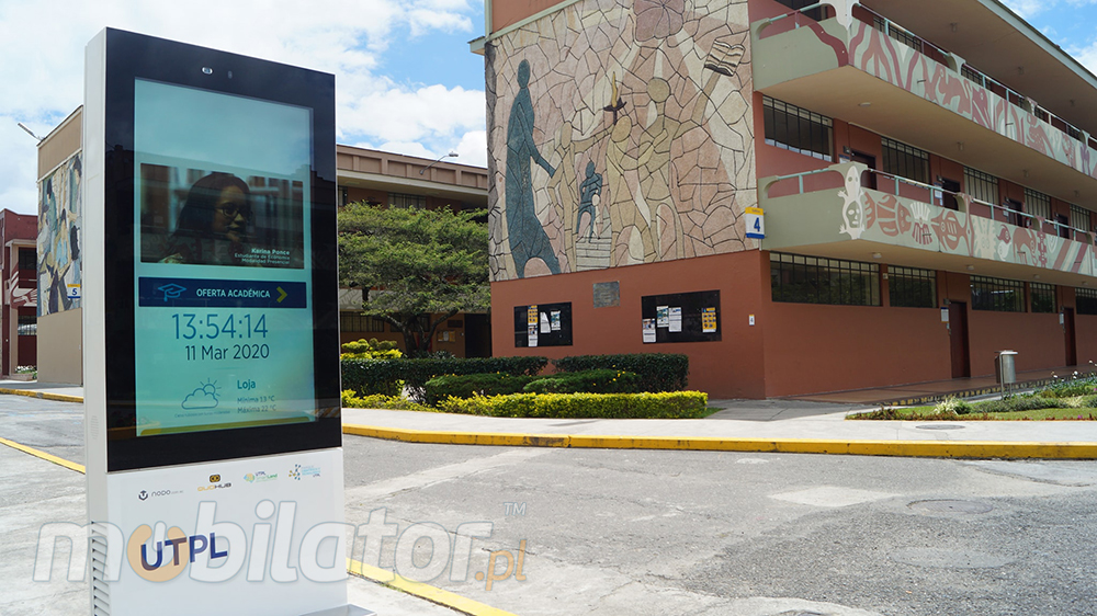 Totem wolnostojący przemysłowy z ekranem LCD jest wyposażony w moduł WiFi, 4G oraz opcjonalnie w Bluetooth. Dodatkowo totem posiada moduł pozwalający namierzanie pozycji.