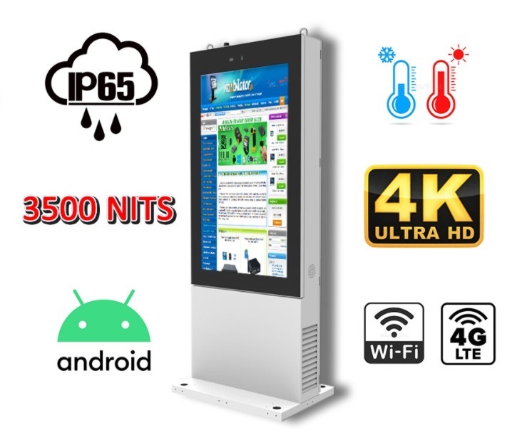 Obudowa panelu o wymiarach 2660mm x 1204mm x 312mm została wykonana z najwyższej jakości metalu pokrytego powłoką galwaniczną, co zapewnia bardzo dużą odporność urządzenia na uszkodzenia mechaniczne i ciężkie warunki atmosferyczne, deszcz, mgłę, śnieg oraz szron. Model ten o wadze 370.0 kg, jest w każdej chwili gotowy do eksploatacji nawet w trudnych warunkach, takich jak upał czy zimno. Digital Singage Player - Android 75 cale Totem reklamowy, informacyjny NoMobi Trex to seria urządzeń przeznaczonych do zastosowań wymagających ciągłej pracy - 24 godziny, 7 dni w tygodniu.