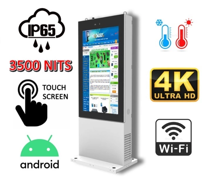 Obudowa panelu o wymiarach 2660mm x 1204mm x 312mm została wykonana z najwyższej jakości metalu pokrytego powłoką galwaniczną, co zapewnia bardzo dużą odporność urządzenia na uszkodzenia mechaniczne i ciężkie warunki atmosferyczne, deszcz, mgłę, śnieg oraz szron. Model ten o wadze 370.0 kg, jest w każdej chwili gotowy do eksploatacji nawet w trudnych warunkach, takich jak upał czy zimno. Digital Singage Player - Android 75 cale Totem reklamowy, informacyjny NoMobi Trex to seria urządzeń przeznaczonych do zastosowań wymagających ciągłej pracy - 24 godziny, 7 dni w tygodniu.