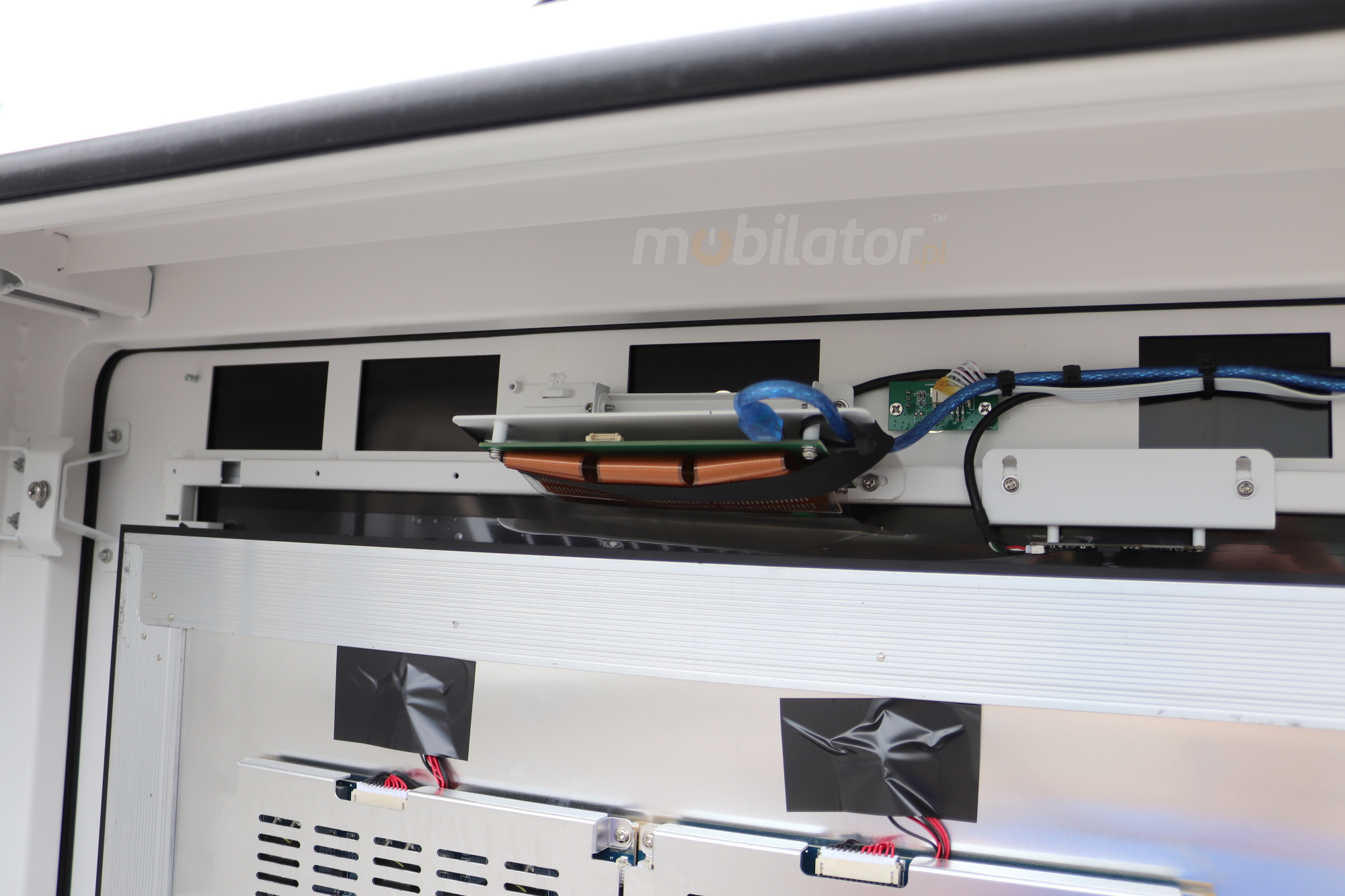 W urządzeniu zamontowany jest wymiennik ciepła zapewniający chłodzenie urządzenia w wysokich temperaturach, dzięki czemu totem zewnętrzny może funkcjonować w upale i słońcu. System chłodzenia sprawia, że wyświetlacz może poprawnie działać w lecie, a reklamy będą widoczne. Przykładowo, jeśli urządzenie zacznie się nagrzewać do temperatury 60°C to zamontowany wiatraczek poprzez zwiększenie obrotów schłodzi totem do temperatury poniżej 50°C, dzięki czemu urządzenie będzie mogło prawidłowo funkcjonować.