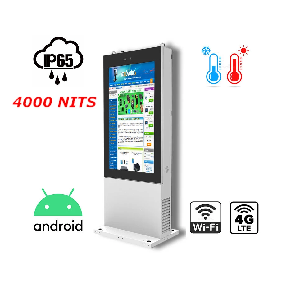 Obudowa panelu o wymiarach 2660mm x 1204mm x 312mm została wykonana z najwyższej jakości metalu pokrytego powłoką galwaniczną, co zapewnia bardzo dużą odporność urządzenia na uszkodzenia mechaniczne i ciężkie warunki atmosferyczne, deszcz, mgłę, śnieg oraz szron. Model ten o wadze 370.0 kg, jest w każdej chwili gotowy do eksploatacji nawet w trudnych warunkach, takich jak upał czy zimno. Digital Singage Player - Android 75 cale Totem reklamowy, informacyjny NoMobi Trex to seria urządzeń przeznaczonych do zastosowań wymagających ciągłej pracy - 24 godziny, 7 dni w tygodniu.