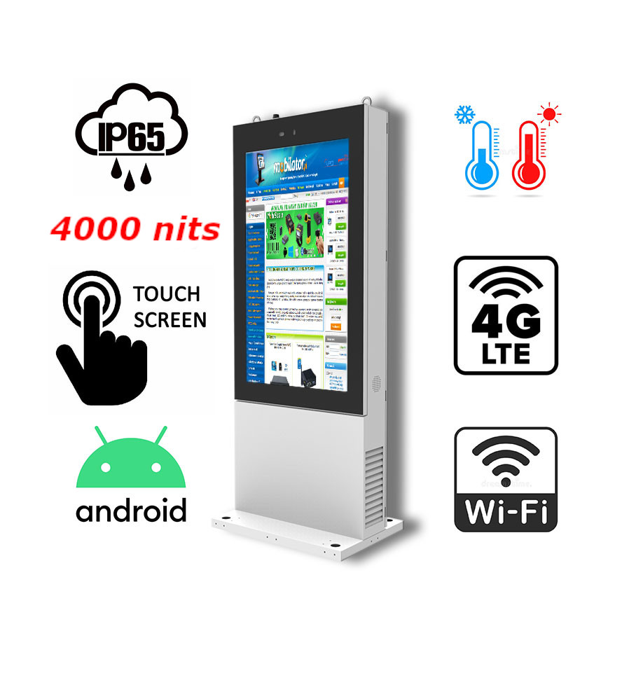 NoMobi Trex Hi75 v.5 - infokiosk na Androidzie - odporny na warunki atmosferyczne - 75-calowy dotykowy ekran o jasności 4000 nitów (bardzo dobra widocznośc "w Słońcu"), moduł 4G do łączności bezprzewodowej (ok. 2,5 miesiąca dostawy)