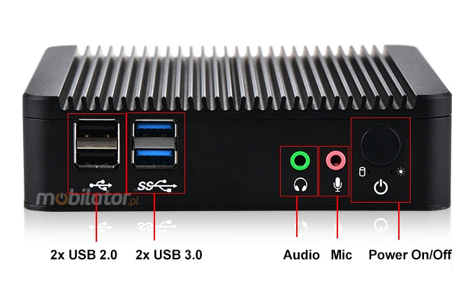 W przemysłowym Mini PC zastosowano sprawdzony system chłodzenia, oparty wyłącznie na elementach stałych, głównie radiatorach. W systemie tym wykorzystuje się zjawisko oddawania przez metale energii cieplnej do otoczenia – nie występują tu dodatkowe elementy ruchome w postaci np. wentylatorów. Takie rozwiązanie zapewnia bezgłośną pracę, mniejszą awaryjność oraz większą ochronę przed kurzem i innymi zabrudzeniami przy jednoczesnym zmniejszeniu ilości pobieranej energi.