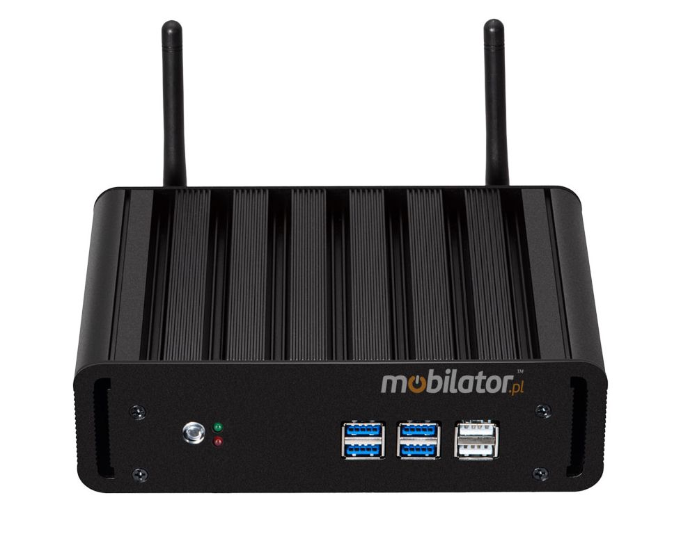 W przemysłowym Mini PC zastosowano sprawdzony system chłodzenia, oparty wyłącznie na elementach stałych, głównie radiatorach. W systemie tym wykorzystuje się zjawisko oddawania przez metale energii cieplnej do otoczenia – nie występują tu dodatkowe elementy ruchome w postaci np. wentylatorów. Takie rozwiązanie zapewnia bezgłośną pracę, mniejszą awaryjność oraz większą ochronę przed kurzem i innymi zabrudzeniami przy jednoczesnym zmniejszeniu ilości pobieranej energii.