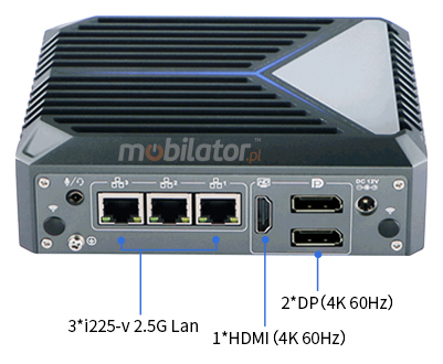 | Łączność | WLAN (WiFi6) : Intel-AX210(M.2)* (opcja) WLAN (WiFi5) : RTL8821AE-DUAL* (opcja) LAN : 3x Intel i2256-V 2.5G LAN |