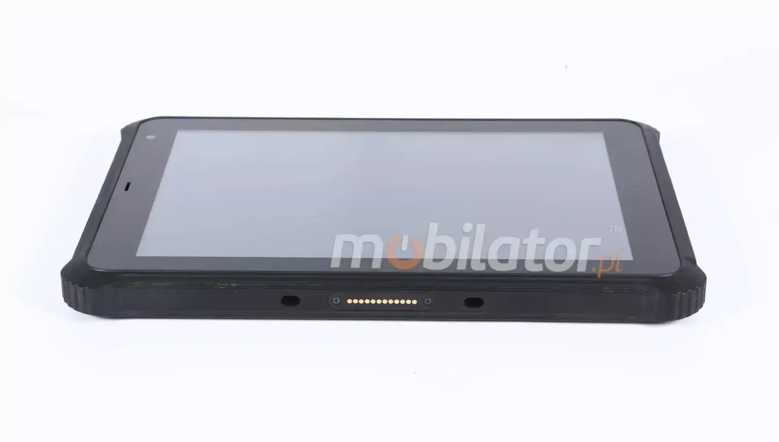 Stacja dokująca umożliwia szybkie ładowanie tabletu oraz jego stabilną integrację z infrastrukturą magazynową lub produkcyjną podczas pracy stacjonarnej.