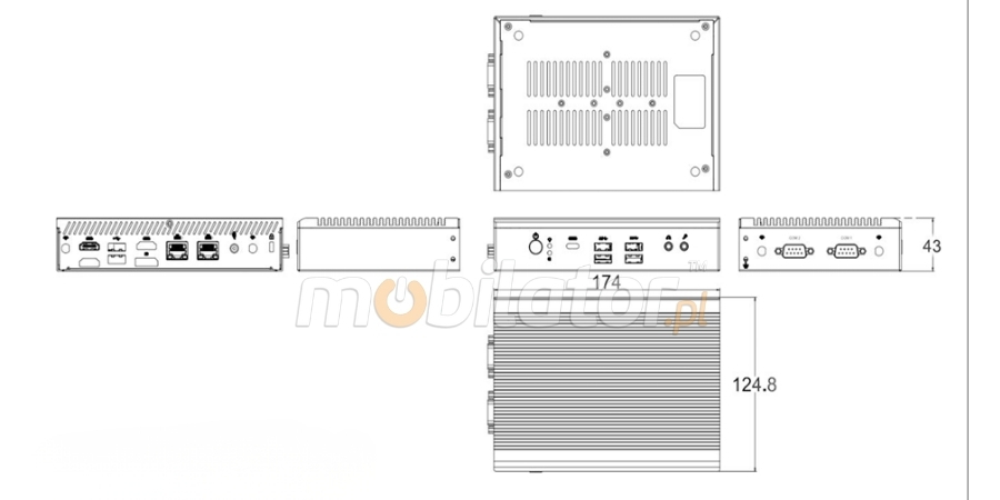 Wszechstronny MobiPad nBOX MD12-V2-I5U cechuje się kompaktową obudową wykonaną z metalu o wymiarach 174 x 125 x 43 mm, co predysponuje go do pracy w nowoczesnych biurach oraz surowych strefach przemysłowych. Bezwentylatorowy system chłodzenia pozwala na umiejscowienie sprzętu w niemal dowolnej lokalizacji, natomiast pełna zgodność ze standardem montażowym VESA umożliwia sprawne przytwierdzenie jednostki do tylnej części wyświetlacza, co przekłada się na optymalne zagospodarowanie powierzchni roboczej. Ta ważąca jedynie 0,98 kg konstrukcja , oparta na wydajnym, 10-rdzeniowym układzie Intel Core i5-1235U , stanowi solidną bazę dla zaawansowanych konfiguracji typu All-in-One, wykazując przy tym wysoką niewrażliwość na zapylenie i stabilność działania w szerokim zakresie temperatur.