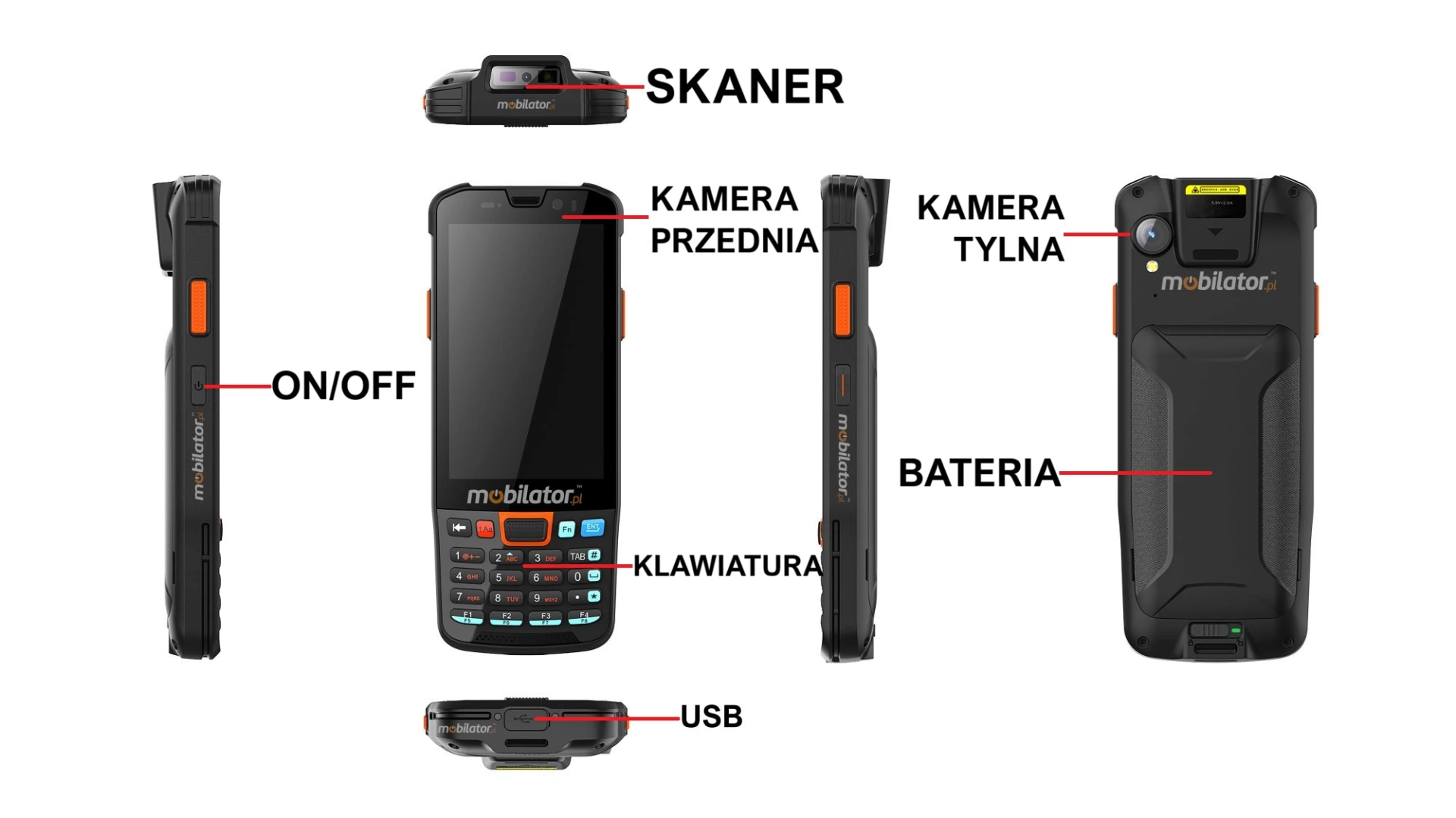 MobiPad P3600KH to model kolektora danych przeznaczony do zastosowań profesjonalnych. Urządzenie to charakteryzuje się podwyższoną wytrzymałością, zaprojektowaną z myślą o pracy w wymagających warunkach. Posiada certyfikat IP65 potwierdzający odporność na kurz i silne strumienie wody. Dodatkowo, jego wzmocniona konstrukcja oraz pojemna bateria 5000mAh wspierają niezawodne działanie w terenie. Urządzenie jest wyposażone w złącze USB Typ-C z obsługą szybkiego ładowania do 9V/2A, a w zestawie znajduje się fabryczna ładowarka 5V/2A.
