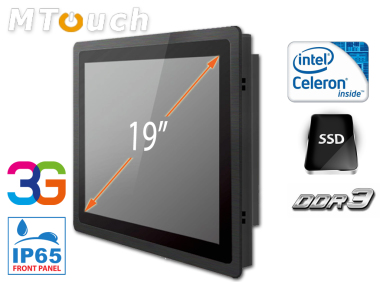 Operatorski Panel Przemyslowy Fanless MobiBOX IP65 J1900 19 w standardzie posiada system komunikacji bezprzewodowej Wi-Fi. Opcjonalnie panel pc mo¿emy wyposa¿yæ w modu³ 3G.
