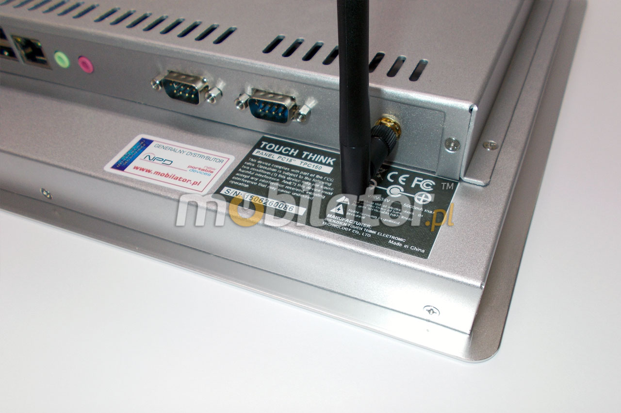 Operatorski Panel Przemyslowy MobiBOX IP65 i7 15 w standardzie posiada system komunikacji bezprzewodowej Wi-Fi. Opcjonalnie panel pc możemy wyposażyć w moduł 3G.