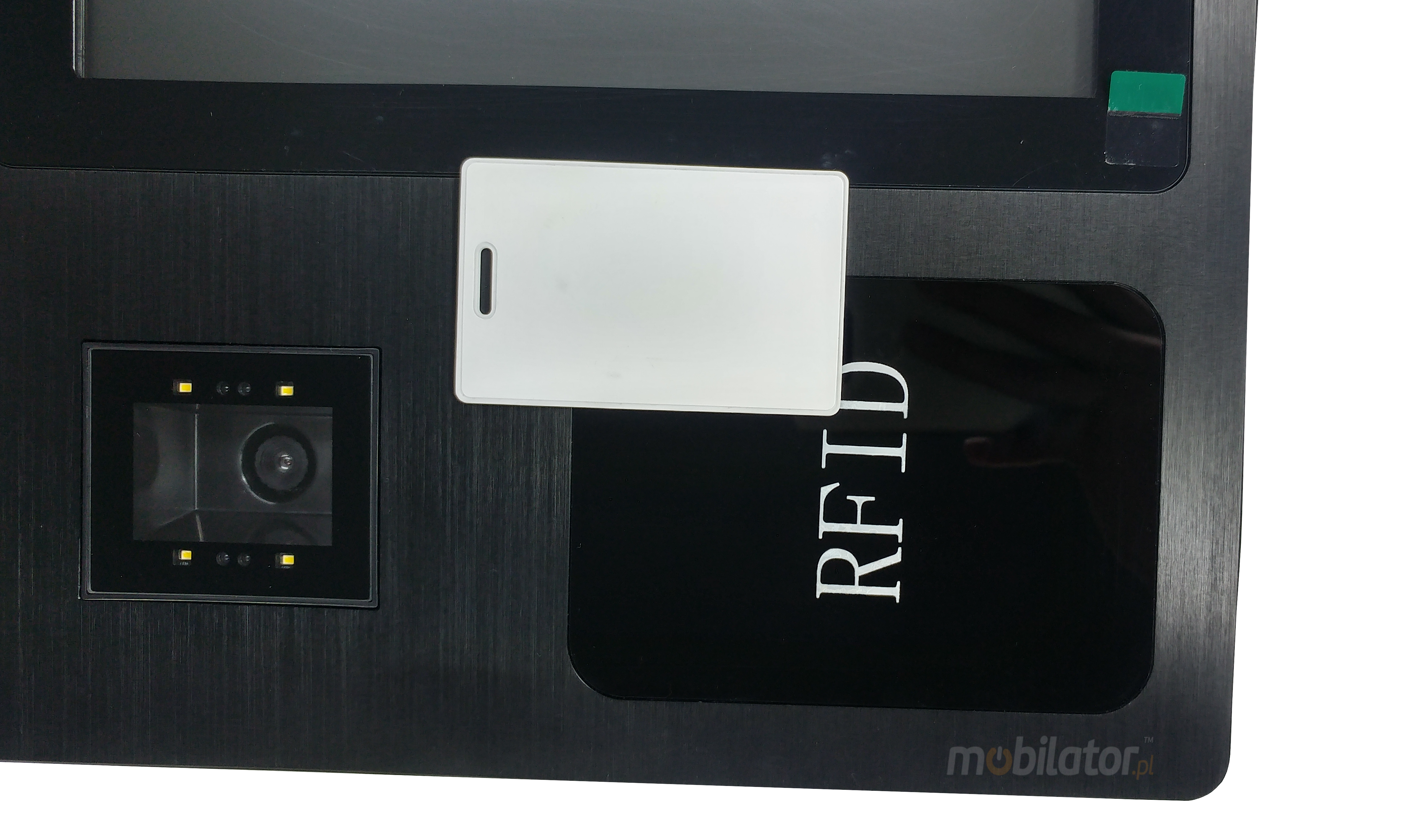 RFID to technologia stosowana do identyfikacji obiektów oraz kontroli przepływu produktów. Odczytywanie informacji ze specjalnych tagów, które przymocowuje się do przedmiotów (ale nie tylko, gdyż RFID znajduje zastasowanie także do znakowania zwierząt, a nawet ludzi) następuje drogą radiową. W zależności od rodzaju tagu zmienia się ilość informacji, które może on przechowywać jak i również maksymalna odległość, z której można odczytać dane. Tagi RFID, to alternatywa dla kodów kreskowych - wygodniejsza i bardziej wydajna. W tym modelu zamontowany został czytnik typu RFID HF pracujący na częstotliwości 13,56 MHz. Stosowany w urządzeniu czytnik działa w trybie wirtualnego portu COM. W związku z tym potrzebne jest dodatkowe oprogramowanie by zapisywać sczytywany kod w formie tekstowej.