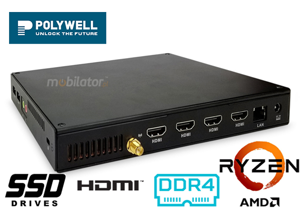 W przemysłowym mini komputerze Polywell-V4000-4HDMI zastosowano wydajny i energooszczędny procesor AMD Ryzen™ 5 3500u. W jego wnętrzu znajdują się osiem współdziałących rdzeni umożliwiających bardziej efektywne przetwarzanie wielu zadań jednocześnie.Współużytkowana pamięć cache, w której wykorzystano wielopoziomową hierarchię, jest dynamicznie przydzielana dla każdego rdzenia procesora w zależności od obciążenia. Doprowadza to do zmniejszenia średniego czasu dostępu do pamięci głównej.