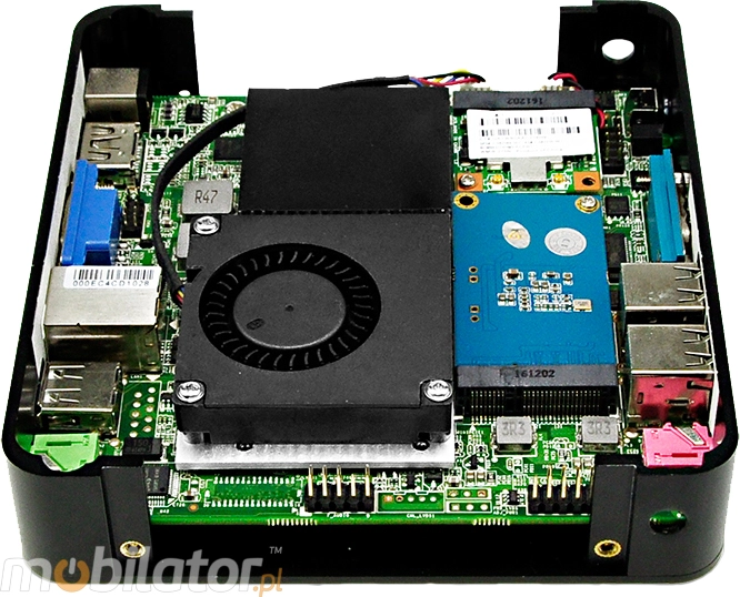 W Przemysłowy Fanless MiniPC mBOX Nuc Q190N zastosowano sprawdzoną metodę chłodzenia. Odbywa się ono głównie poprzez elementy pasywne obudowy, posiadającej bardzo dużą powierzchnię (wzdłużne lamele, żebra) odprowadzającą ciepło. Zastosowany wewnątrz komputera wentylator ma za zadanie szybkie odprowadzenie gorącego powietrza znad procesora, dzięki czemu komputer przemysłowy jest szybciej i efektywniej schładzany.