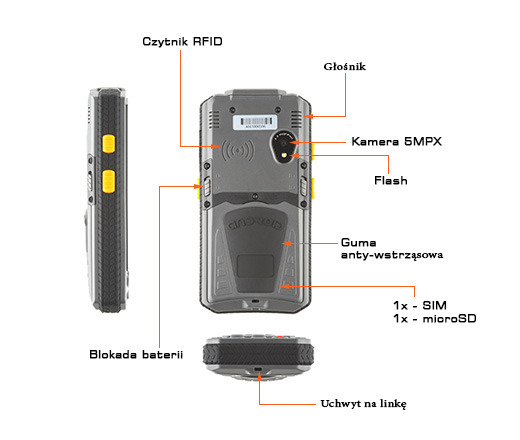 • Przemysłowy Kolektor Danych MobiPad H-H4 to profesjonalny sprzęt w nowoczesnej oprawie. Dzięki możliwości opcjonalnego wyposażenia kolektora w skaner kodów 1D lub 2D oraz moduł NFC, znajduje on szerokie zastosowanie w branży przemysłowej. Dodatkowo kolektor posiada wzmocnioną konstrukcję, wodoodporność oraz pyłoodporność co wpływa na komfort użytkowania urządzenia w ciężkich warunkach. Wszystkie te cechy w połączeniu z atrakcyjną ceną sprawiają, że A80NS jest idealnym wyborem dla każdego kto szuka wydajnego urządzenia z bardzo dobrym stosunkiem jakości do ceny.