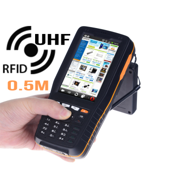Czytnik funkcjonujący w częstotliwości UHF został zaprojektowany do działania w warunkach przemysłowych oferując najlepsze osiągi odczytu z dużej odległości. Zaletą UHF są zaimplementowane procedury antykolizyjne, wadą – problemy z odczytem, gdy w pobliżu znajdują się płyny lub metalowe urządzenia/części. Obsługa tej częstotliwości została ustandaryzowana przez normę ISO 18000-6. W celu ujednolicenia protokołów komunikacji dla częstotliwości 860-956 MHz wprowadzono nowy standard UHF GEN2. W przypadku zastosowania czytnika RFID UHF urządzenie posiada dodatkowo ruchomą antenę widoczną na obrazku powyżej.