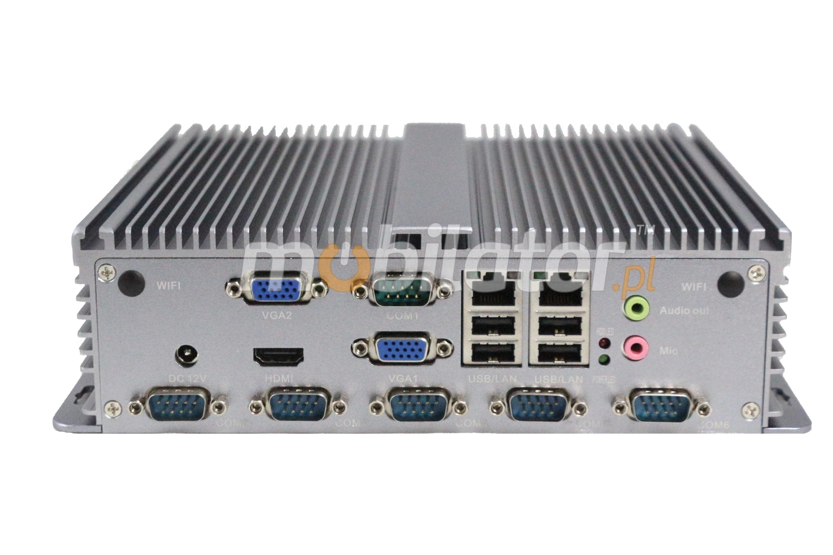 Zintegrowane karty sieciowe Intel RTL8111E 1000M Lan oraz moduł WiFi umożliwia podłączenie urządzenia do sieci. Komputer wyposażony jest w: dwa złącza LAN, opcjonalne porty RS232-COM (max. 10), osiem portów USB 2.0, dwa porty VGA, jeden posrt HDMI, jedno wyjście audio oraz złącza wbudowane na płycie głównej: jedno wejście SIM, trzy złącza SATA, jeden port Mini SATA, dwa porty MINI-PCIE, 4 wejścia USB 2.0, oraz jedno złącze GPIO.