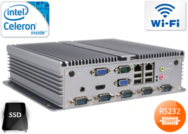 Zintegrowane karty sieciowe Intel RTL8111E 1000M Lan oraz modu³ WiFi umo¿liwia pod³±czenie urz±dzenia do sieci. Komputer wyposa¿ony jest w: dwa z³±cza LAN, opcjonalne porty RS232-COM (max. 10), osiem portów USB 2.0, dwa porty VGA, jeden posrt HDMI, jedno wyj¶cie audio oraz z³±cza wbudowane na p³ycie g³ównej: jedno wej¶cie SIM, trzy z³±cza SATA, jeden port Mini SATA, dwa porty MINI-PCIE, 4 wej¶cia USB 2.0, oraz jedno z³±cze GPIO.