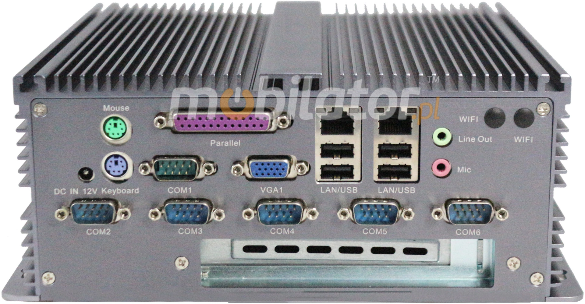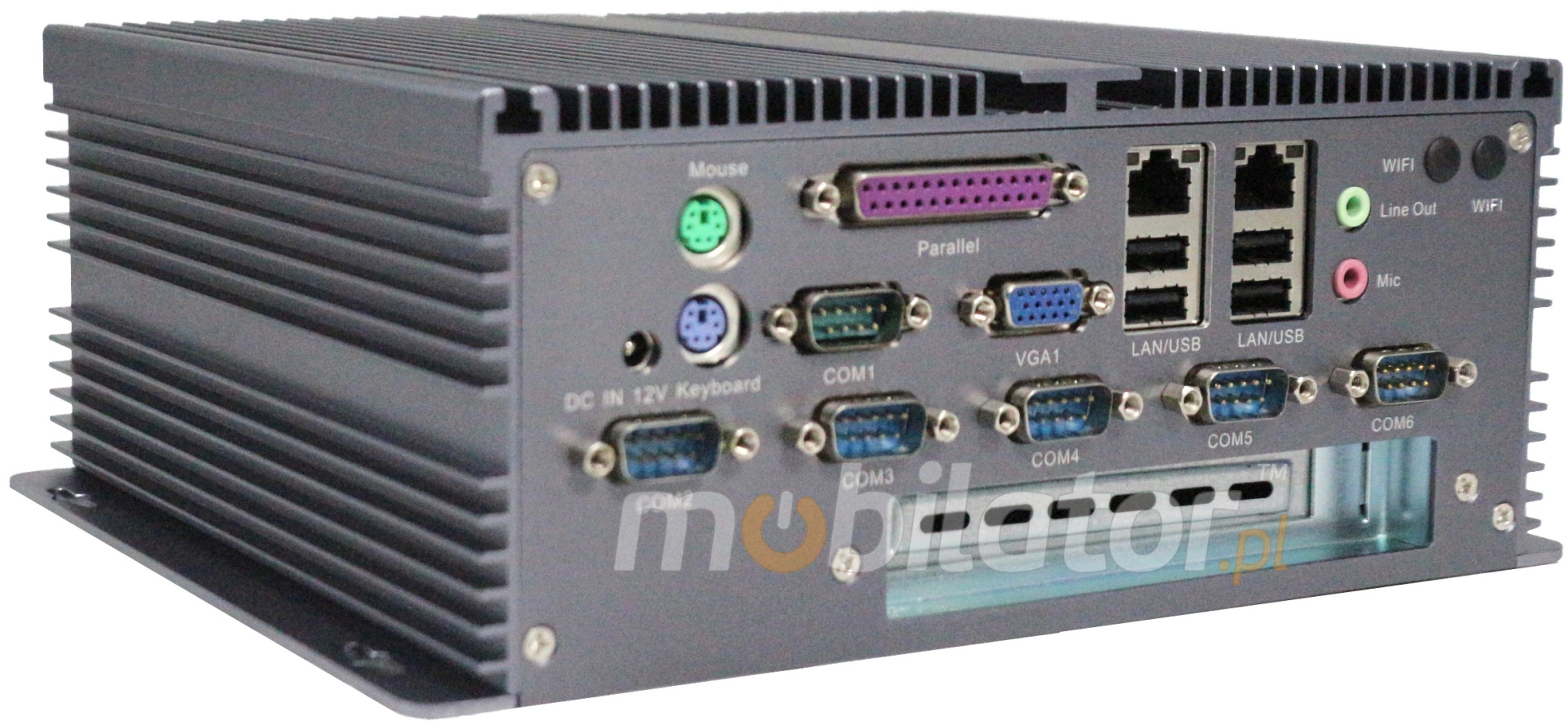 Zintegrowane karty sieciowe Intel RTL8111E 1000M Lan oraz moduł WiFi umożliwiają podłączenie urządzenia do sieci. Komputer wyposażony jest w: dwa złącza LAN, sześć portów COM, osiem portów USB 2.0, jeden port LPT jeden port VGA, dwa porty PS/2, jedno wyjście audio, jedno wejście PCI oraz złącza wbudowane na płycie głównej: dwa porty SATA, jeden port Mini SATA, oraz dwa porty MINI-PCIE i 4 wejścia USB 2.0.