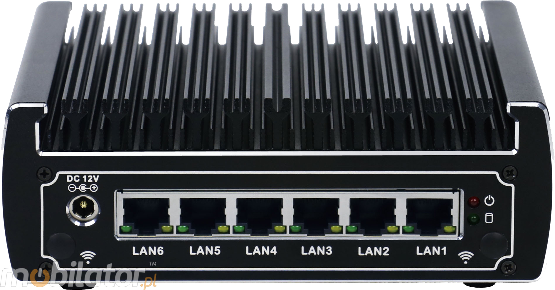 Zintegrowana karta sieciowa Intel 82583V 10/100/1000M Lan oraz moduł WiFi+Bluetooth umożliwiaja podłączenie urządzenia do sieci. Komputer wyposażony jest w: sześć złączy LAN, cztery porty USB 3.0, jedno złącze COM RJ-45, jedno wyjście HDMI.