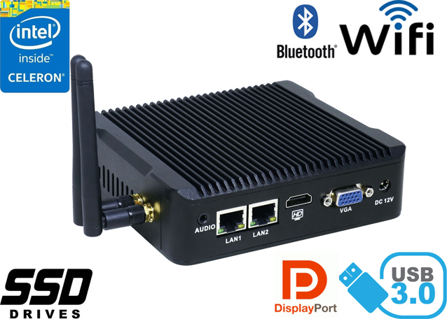 Zintegrowana karta sieciowa Intel RTL8111E 1000M Lan oraz moduł WiFi + Bluetooth umożliwia podłączenie urządzenia do sieci. Komputer wyposażony jest w: dwa złącza LAN, dwa porty USB 3.0, cztery porty USB 2.0 jeden port Display Port, dwa wyjścia HDMI, jeden port COM(RS232), jedno wyjście audio oraz złącza wbudowane na płycie głównej: jeden port SATA, jeden port MINI-PCIE.