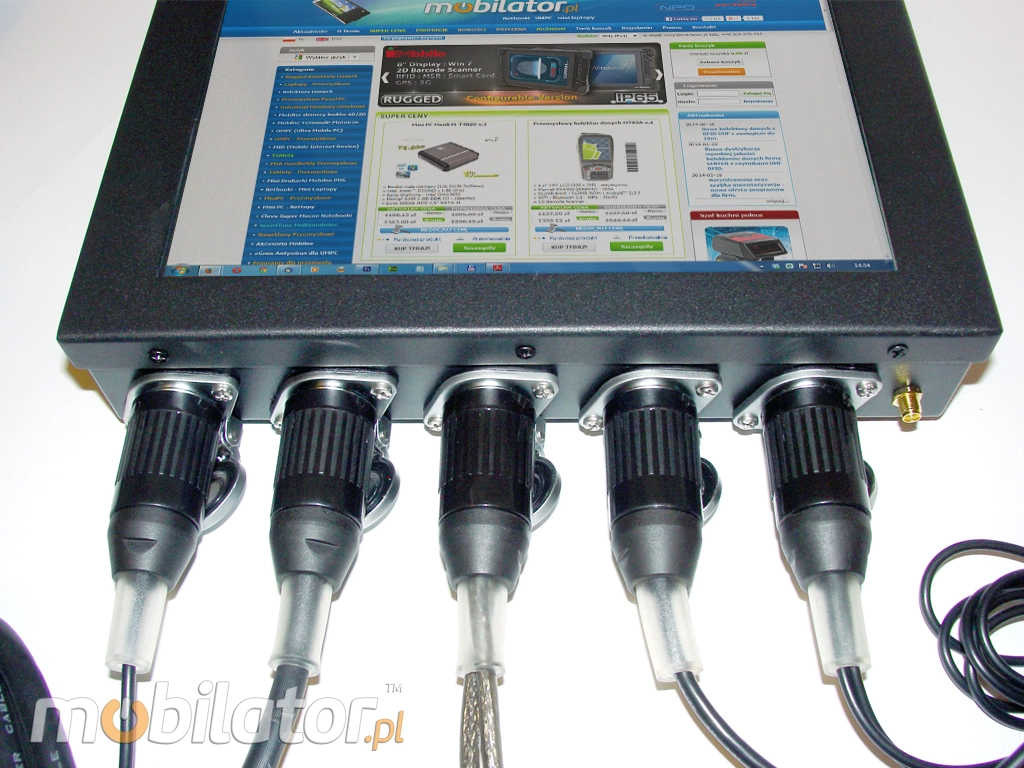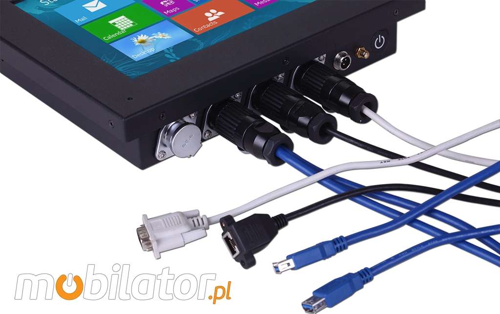 Panel PC CT10-PC-IP65 wyposażony jest w specjalistyczne aluminiowe złącza do których mocowane są wszystkie potrzebne porty i interfejsy. Porty mocowane za pomocą specjalnego 7 pinowego gniazda, które zapewnia doskonałą jakość.