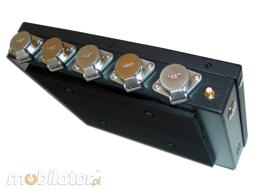 Panel PC CT10-PC-IP65 wyposażony jest w specjalistyczne aluminiowe złącza do których mocowane są wszystkie potrzebne porty i interfejsy. Porty mocowane za pomocą specjalnego 7 pinowego gniazda, które zapewnia doskonałą jakość.