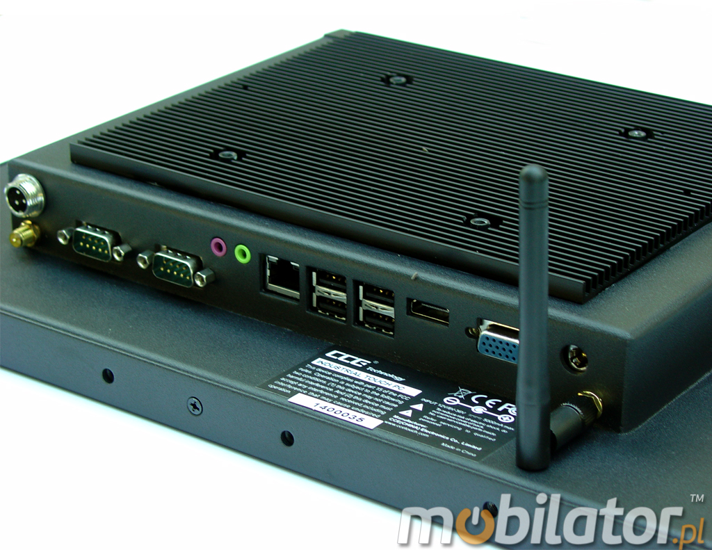 Zintegrowana karta sieciowa Intel RTL8111E 1000M LAN 1xRJ-45 (opcja 2xRJ-45), WIFI umożliwia podłączenie urządzenia do sieci. Komputer wyposażony jest w: jedno złącze LAN, w dwa porty COM(RS232), jedno wyjście VGA, jedno wyjście HDMI, cztery porty USB 2.0 (opcja USB 3.0), jedno wejście Audio, jedno wejście mikrofonowe oraz w przełącznik zasilania (przykręcany).